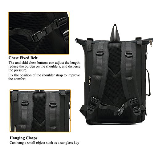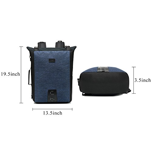 -. Feature : Dimensions : 19.5 x 3.5 x 13.5 inches with dedicated Laptop compartment fits up to 15.6 Inches Laptops. WEIGHT: 1.12pounds / Material: This laptop backpack is made from premium environment-friendly nylon material, polyester Lining ,metal zipper, thicken leather handle, Removable shoulder strap,not easy broken. Waterproof & Durable with features: water repellent in light rain, anti-scratch and anti-tear. / Multi-function Compartment:The laptop backpack has 1 side pocket,1 back hidden zipped pouch,6 interior pockets(3 compartments , compartment for your laptop, iPad, books, document,clothes.2 slip pockets for your cell phone, mouse and more. 1 zip pocket for your valuables) / Anti-theft Technology: antiskid shoulder strap, metal zipper and burglarproof buckle keeps your stuff safe. / Design and Styles: The exclusive trendy design gives your device the most functional, antiskid buckle,Back of the backpack equipped a mesh high elastic with adjustable shoulder straps with breathable comfortable material to alleviate shoulder fatigue. Three carrying styles: this bag could be backpack, shoulder bag and messenger bag, you can alter how to carry depending on your needs.