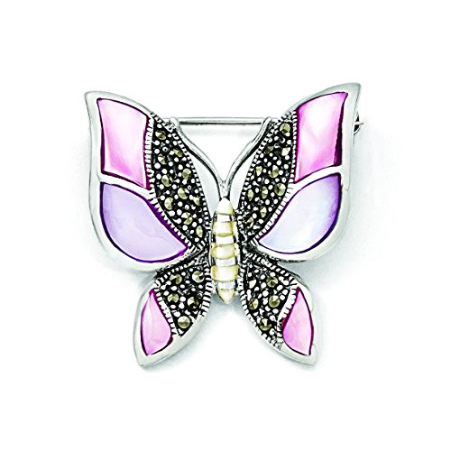 -. Feature : 30 Day Money Back Guarantee / Manufactured by JewelsObsession with the highest quality / Gram Weight: 8.5 / Sterling Silver Marcasite Mother of Pearl Butterfly Pin