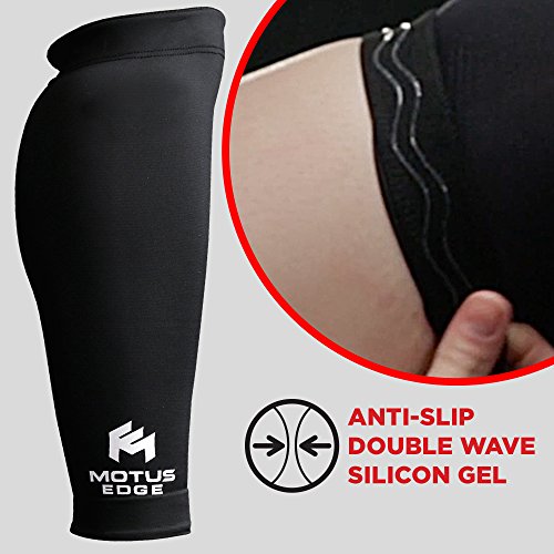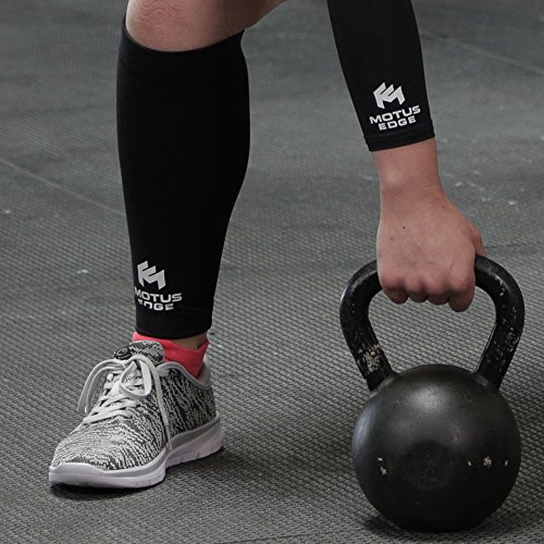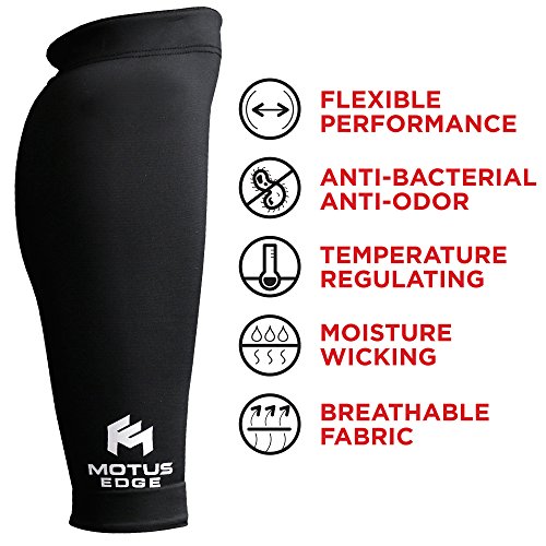 Motus Edge Copper Infused Calf Compression Sleeve for Shin Splints, Leg Cramps, CrossFit, Pain Relief