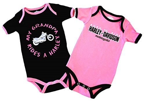 Harley-Davidson Girls Baby Twin Pack Creeper My Grandpa Rides a Harley Pink