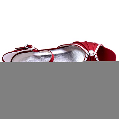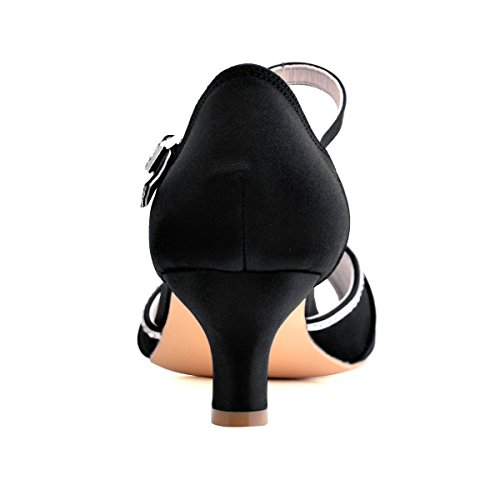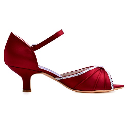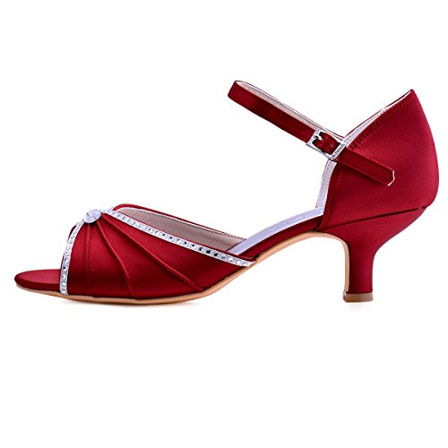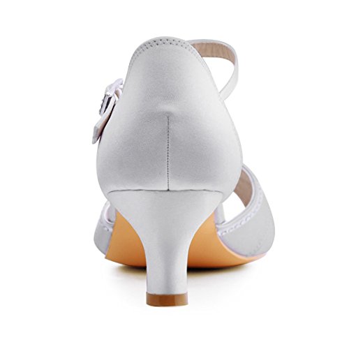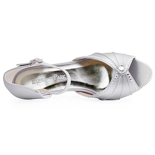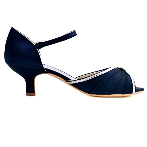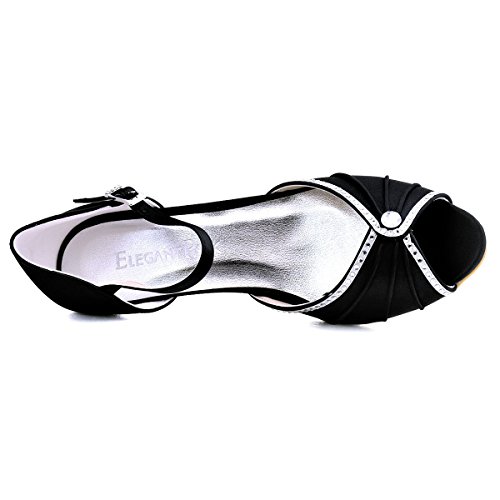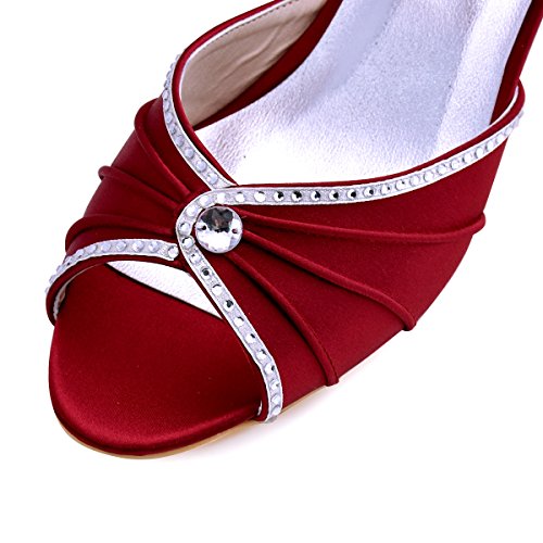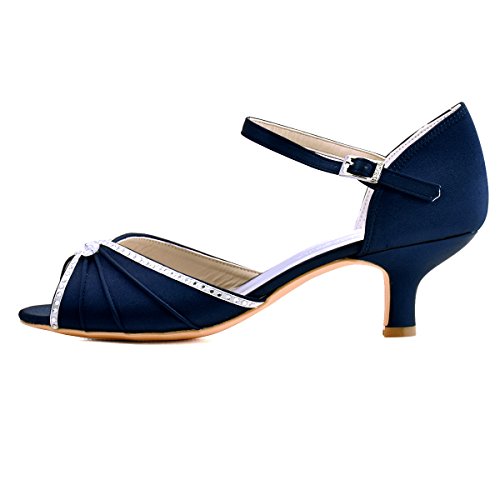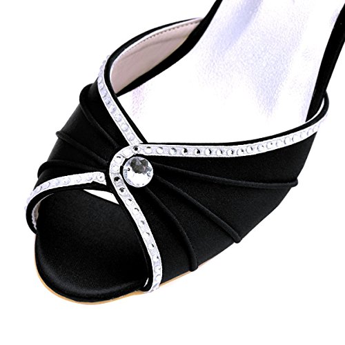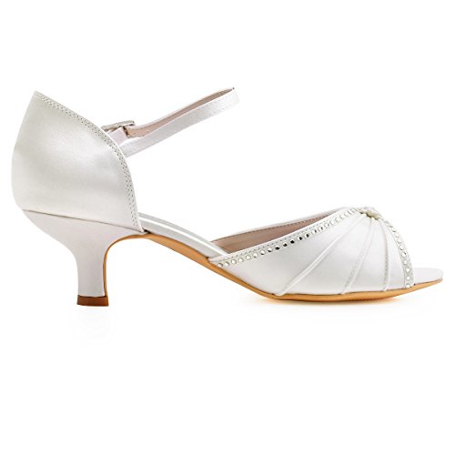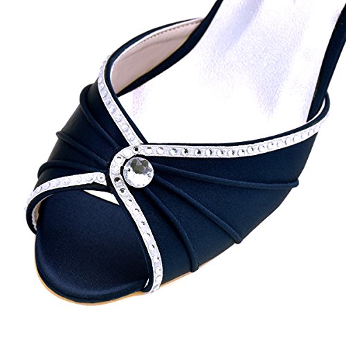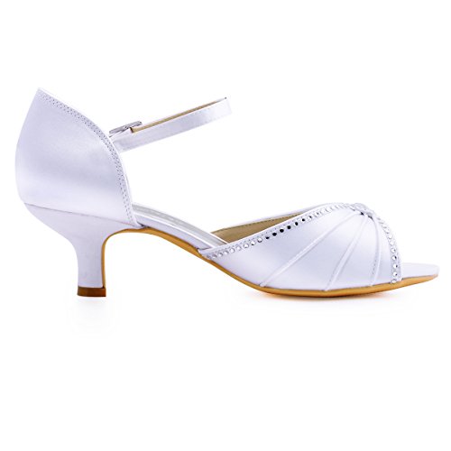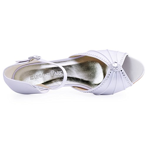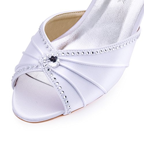 | ElegantPark HP1623 Women's Sandals Peep Toe Mid Heel Pleated Rhinestone Satin Wedding Bridal Shoes |