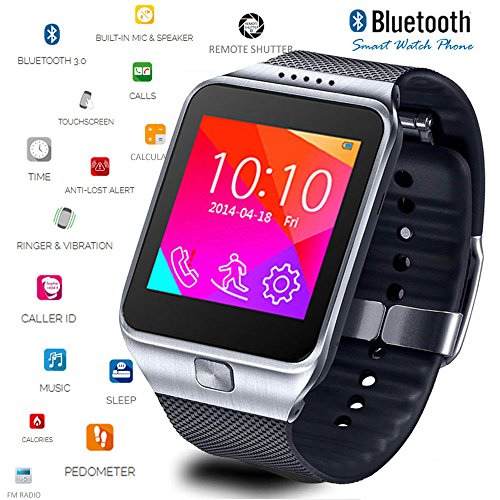 -. Title : Indigi® Stylish Bluetooth Sync Smart Watch w/ Optional micro Sim Card Slot -Unlocked- (Silver)