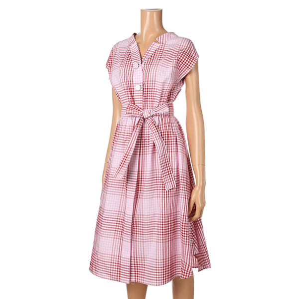 체크밴딩벨티드원피스(C85WOA006A)