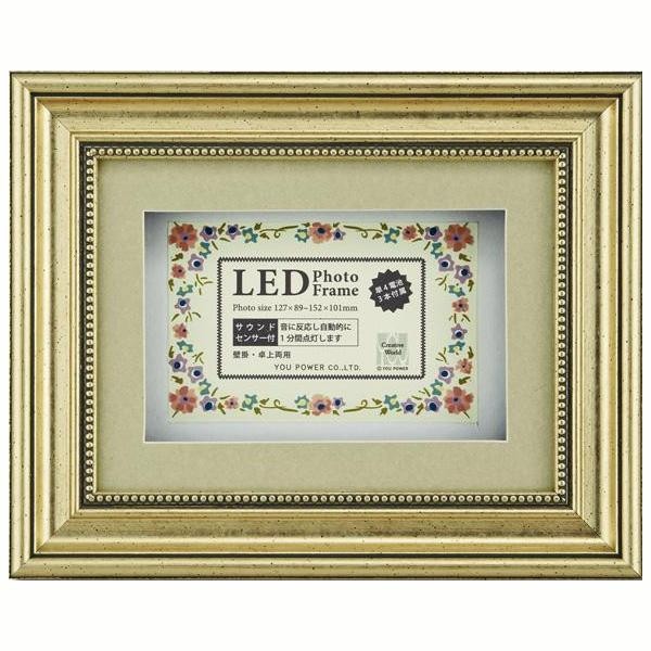 | 仕様 | ●壁掛・卓上両用(縦横両用) ●電源:単4電池×3本 ●1mmマット2枚付 ●音センサー付(音に反応し、自動的に1分間点灯します) ●フォトサイズ:サービスサイズ(89×127mm)~ポストカードサイズ(101×152mm)1枚 |