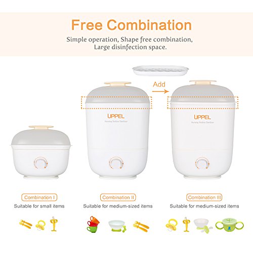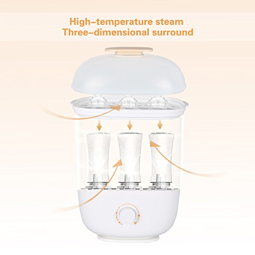 -. Feature : COMPLETE CLEAN: Penetrating steam disinfects at a higher temperature than your dishwasher to kill 99.9% of germs, microbes, and bacteria for reliable sanitization. / 3-IN-1 DESIGN: With one twist of a dial, you can sterilize with steam, dry completely with hot air, and deodorize to clean from start to finish. / LARGE CAPACITY: can accommodate 6-8 bottles at the same time,and you also can put in kids' toys even travel accessories. / CLEAN STORAGE: Keep sanitized bottles and accessories safe in a sterilized environment for over 12 hours to avoid the dangerous spread of bacteria from towel or air drying. / EASY TO USE: The ergonomic shape makes it easy to carry the sterilizer and take it apart for occasional cleaning, plus it features an intuitive timer design and safe auto shut off.