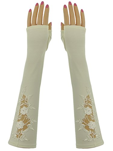 Product DescriptionAbove Elbow Length Lace Net Fingerless Stretch Matt Satin Bridal Gloves Ivory0