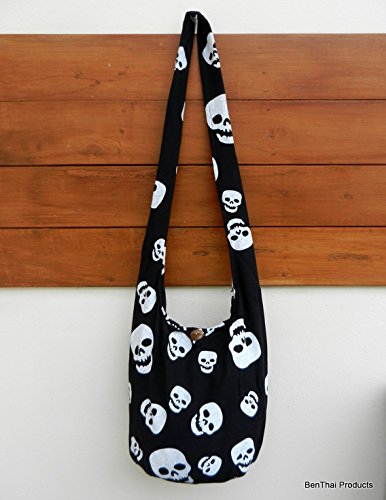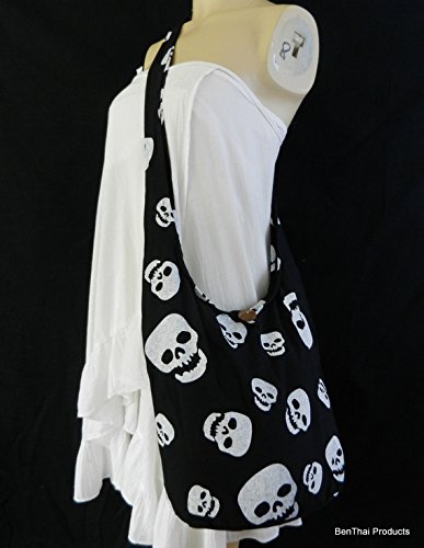 -. Brand : BenThai Products -. Color : multicoloured -. Department : unisex-adult -. Feature : Brand new with Tag "BenThai Products" in Original Packaging & Signature gift. / handmade with 100% cotton / Size: 14" wide by 11" deep by 7" base, 42" end to end shoulder strap / The zippered compartment, wood button clap and a zippered inside pocket. -. PackageQuantity : 1 -. ProductGroup : Photography -. ProductTypeName : HANDBAG -. Size : S -. Title : Goth Punk Rock Skull Crossbody Shoulder Hippie Boho Hobo Messenger Bag Purse Small
