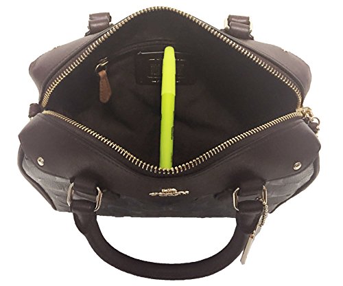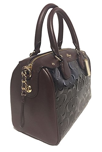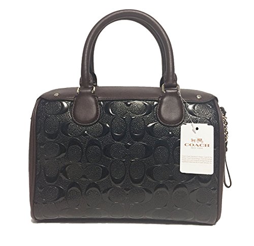 -. Brand : -. Department : womens -. Feature : Debossed patent leather and pebbled leather with gold tone hardware / Inside Zip and Multifunction Pockets / Top zip closure , Fabric Lining / 4.5" top handle. Detachable Strap with 25" Drop for Shoulder or Crossbody Wear / 9" (L) x 6.5" (H) x 5" (W) -. ProductGroup : Shoes -. ProductTypeName : HANDBAG -. Title : Signature Debossed Patent Mini Bennett Satchel Crossbody