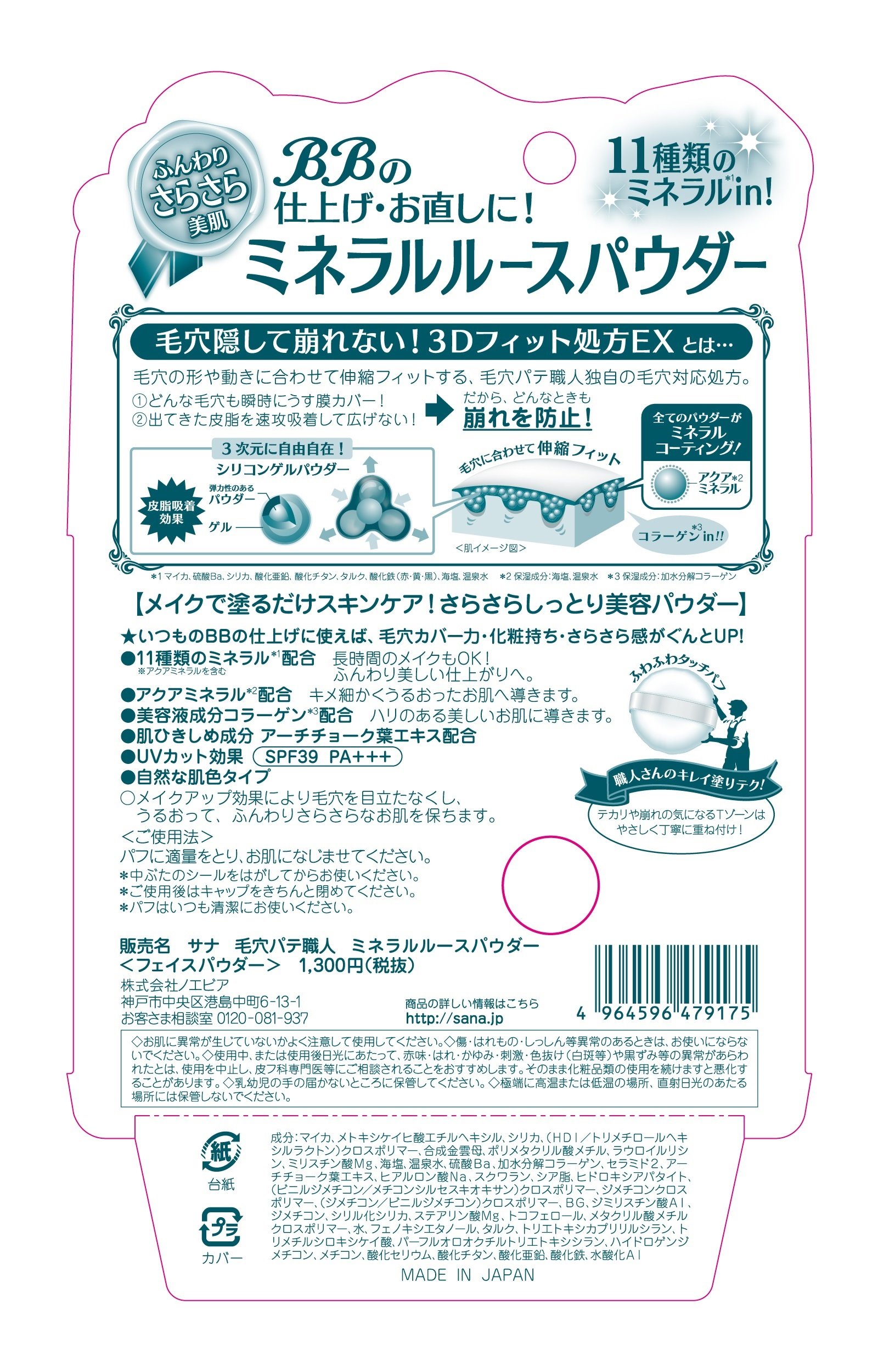 Eleven kinds of minerals in, skin care while making make-up! 3D fit formulation EX uneven membrane cover & sebum adsorption.