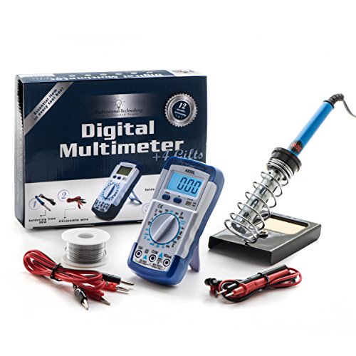 DON’T JUST DIAGNOSE YOUR ELECTRICAL PROBLEMS, FIX THEM YOURSELF WITH THE BONUS SOLDERING IRON, STAND AND WIRES. A ONE YEAR WARRANTY IS ALSO PROVIDED: with every purchase we’re including a 30W, 500° maximum soldering iron, soldering iron stand, solder wire and 2 alligator-clip leads. Buy without worry; at Professional-Technology we stand by our products’ quality craftsmanship by offering you a one year warranty on the Digital Mulitmeter kit