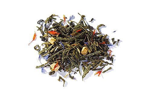 -. Feature : 50 individually wrapped pyramid pouches / Ingredients include green tea leaves, pineapple bits, safflower blossoms and cornflower blossoms / light caffeine