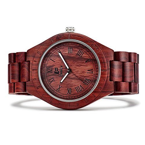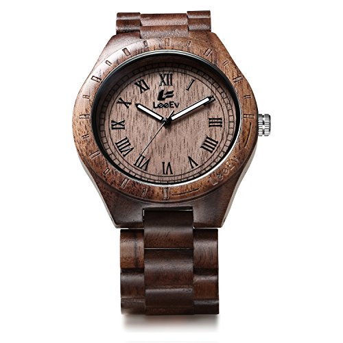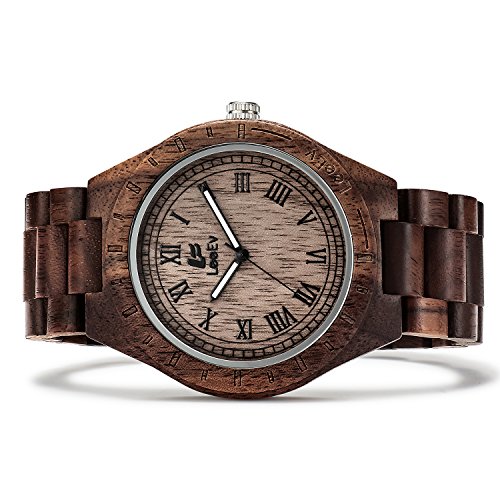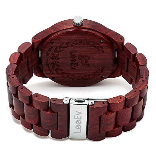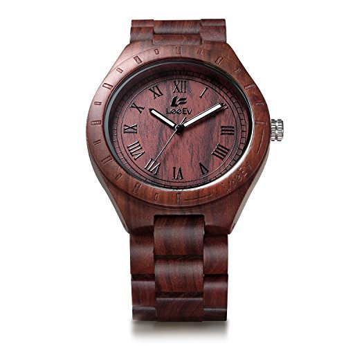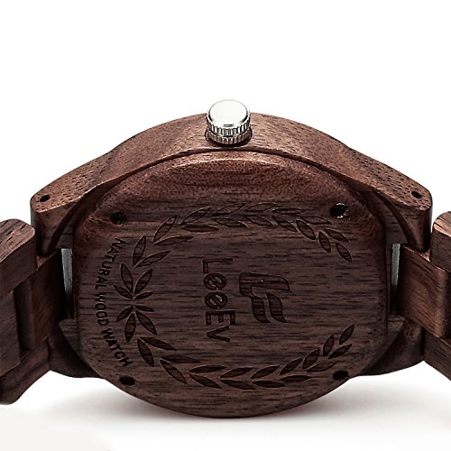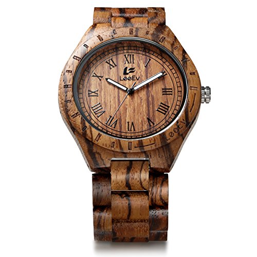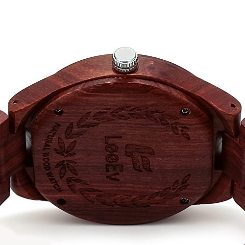 -. Title : LeeEv EV1001 Mens Wood Watch Natural Zebra Red Sandalwood Walnut Wood Quartz Light Weight Vintage Wooden Roman Numeral Watch