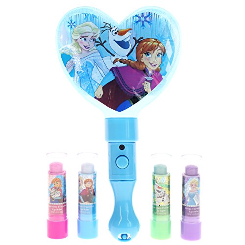 -. Binding : Health and Beauty -. Brand : TownleyGirl -. EAN : 0719565359378 -. Feature : FAVORITE CHARACTERS The light up mirror and each lipstick are decorated with different characters from Disney's Frozen. Kids will have fun showing their friends this spunky collection. / GREAT BIRTHDAY OR HOLIDAY GIFT IDEA Each lip balm in this set is decorated with an image of everyone's favorite frozen characters Anna and Elsa. Multiple colors for creativity and to appeal to any personality! / PERFECT FIRST MAKE-UP This gloss is the perfect first beauty product. Children will love using the lipstick and showing off their sparkles! / SAFE AND NON-TOXIC Water-based formula makes these cosmetics safe for young ones aged six years old and up, including tweens and teens. / AGES 3 AND UP This kit of lip glosses is recommended for children ages 3 and up -. IsAdultProduct : 0 -. Label : TownleyGirl -. Manufacturer : TownleyGirl -. MPN : Disney Light Up Mirrors -. PartNumber : Disney Light Up Mirrors -. ProductGroup : Beauty -. ProductTypeName : BEAUTY -. Publisher : TownleyGirl -. Studio : TownleyGirl -. Title : TownleyGirl Frozen Disney P.R.Incess , 4 Pack Lip Balm with Light Up Mirror, 5 CT (Frozen) -. UPC : 719565359378