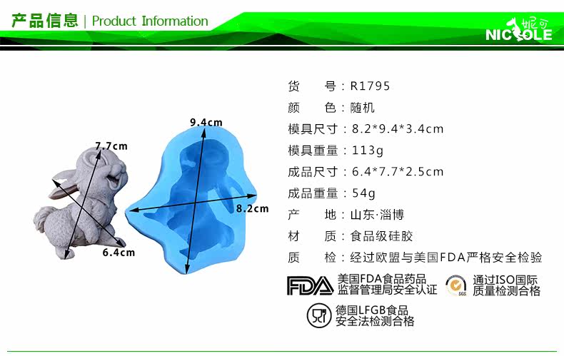 手工皂硅胶模具 卡通兔子DIY香皂精油皂皂模 精油皂矽胶模具