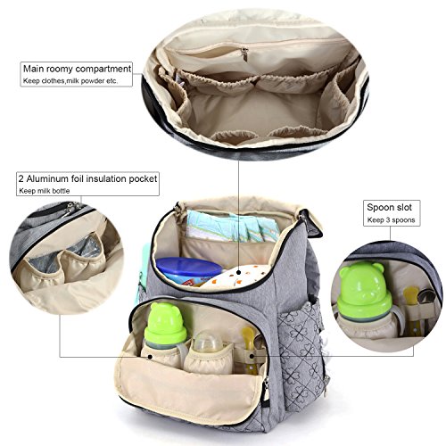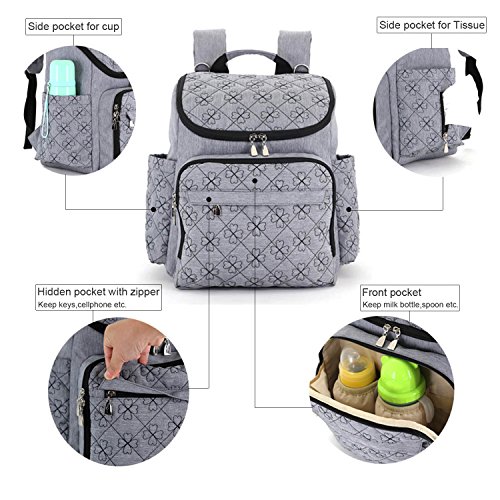 Multi-function Baby Diaper Bag Travel Diaper Backpack with Changing Pad and Stroller Clips(Gray)