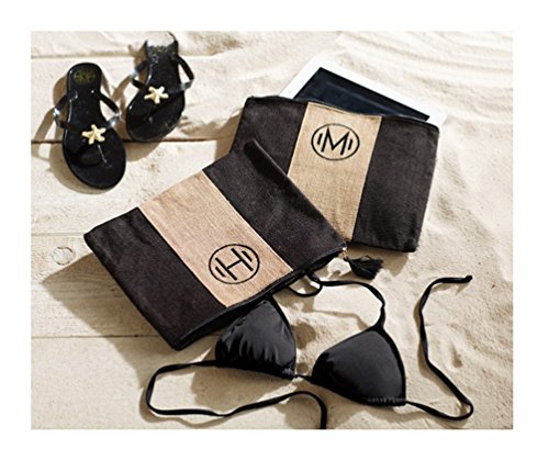 -. Brand : Mud Pie -. Color : Black and Beige -. Department : womens -. Feature : Mud Pie Jute carry-all case has color blocked black and natural jute panels. / Feature black embroidered initial and tasseled zipper pull. / Laminated wipe-clean interior. / Sized to fit most tablets and doubles as wet bikini bag. / Size: 9" x 12" -. Model : 8613138 -. ProductGroup : Shoes -. ProductTypeName : HANDBAG -. Title : Mud Pie Chelsea Initial Monogrammed Jute Carry-all Case