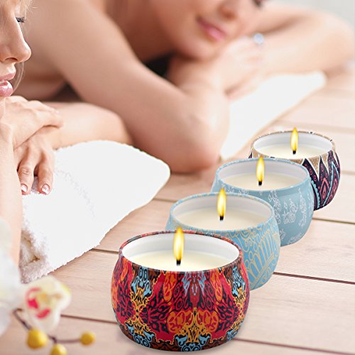 Scented Candles Gift Sets Jasmine Gardenia Rose Lavender Fig 4 Oz Big Eco-Friendly Pure 100% Soy Wax Cubes Naturals Aromatherapy Travel Tin...