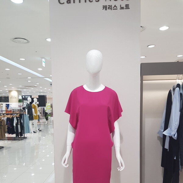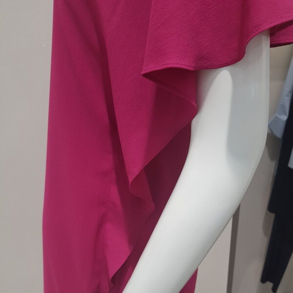 쉬폰 원피스 핫핑크로서 화사하며 어깨부분살짝 가려주어서 주부들의 빨뚝살을 가려주는 느낌입니다^^슬림한핏으로 다자인^^