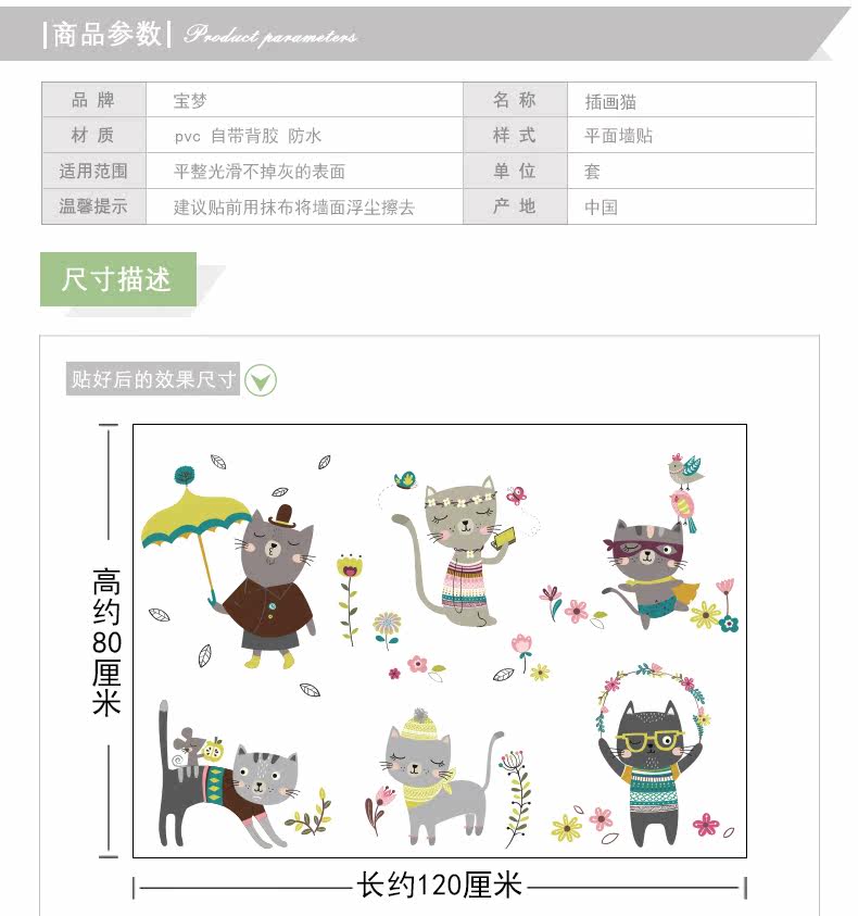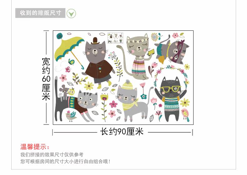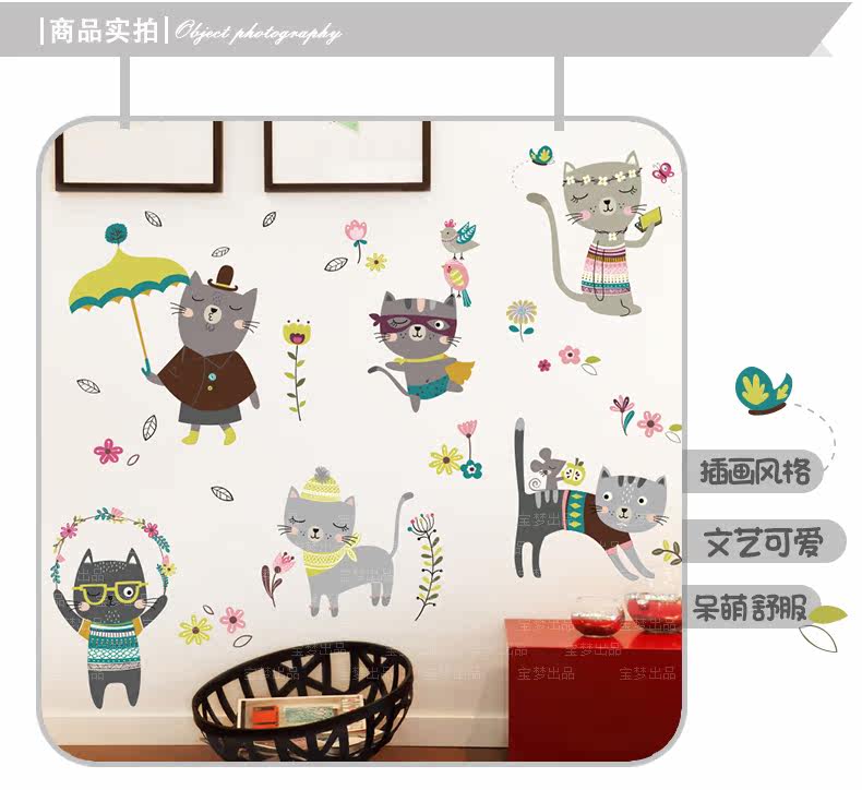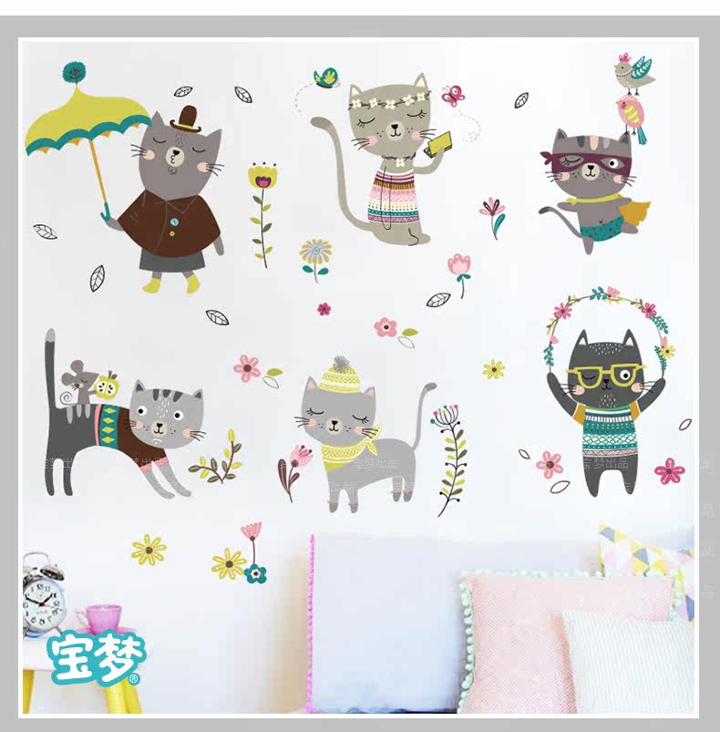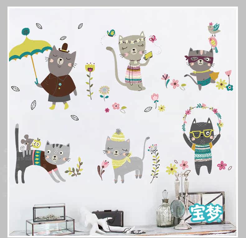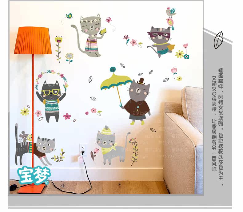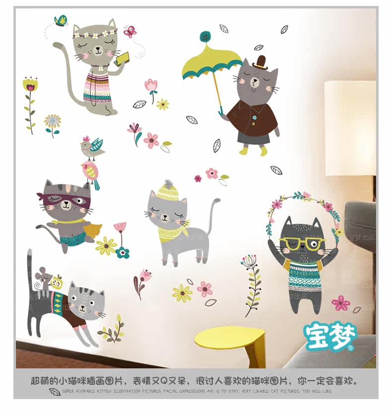 创意客厅卧室可爱猫咪墙贴纸卡通儿童房间走廊楼梯装饰品墙纸贴画
