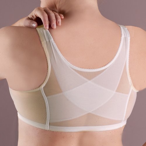 This bra is designed to improve posture with reinforced criss-cross powernet that helps straighten shoulders and support your back. Soft cups support the bust, while providing wire-free comfort..