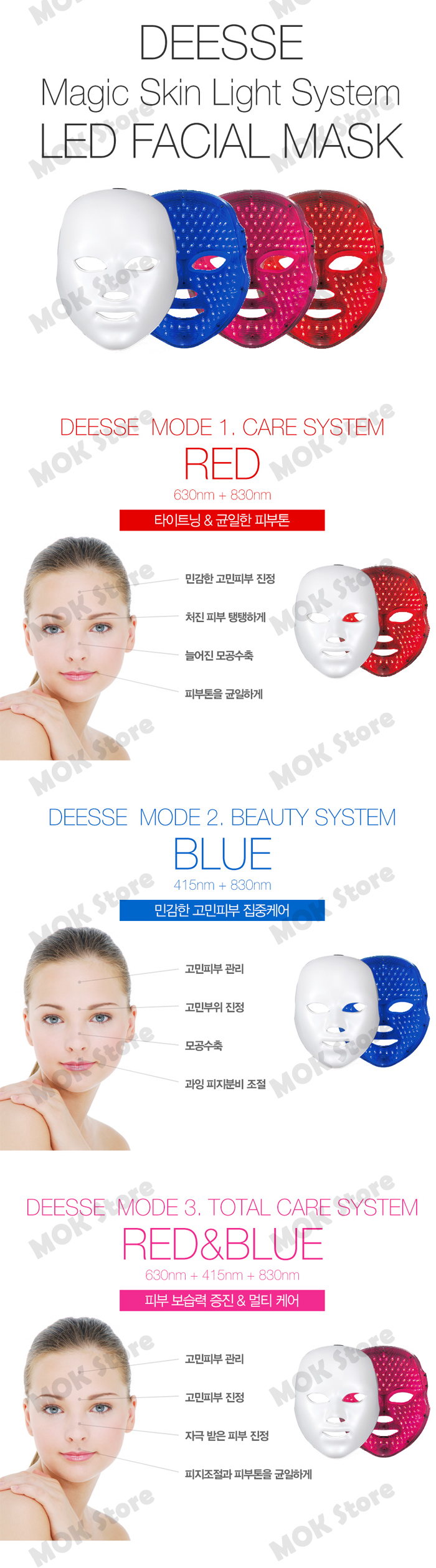 DEESSE LED MASK SBT-MLLT Skin Care Device 3Mode For Anti-aging Wrinkle Acne Care