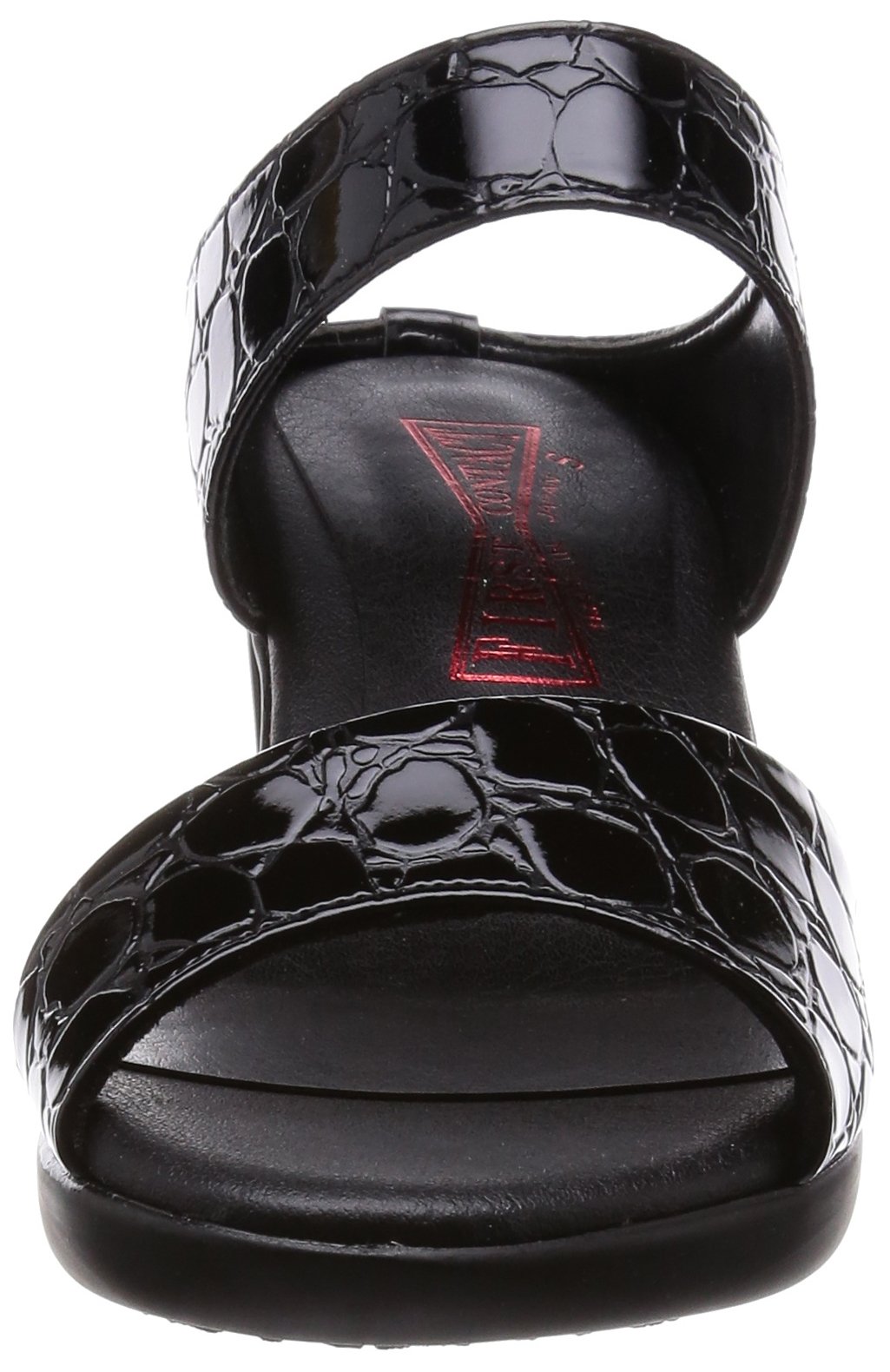Croco embossed on a glossy material, finishing in an adult-like design.