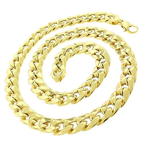 - Title : .925 Sterling Silver Hollow Miami Cuban Curb Link Yellow Gold Plated Necklace Chain 12.5mm (28 Inches)
