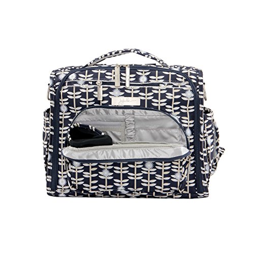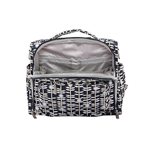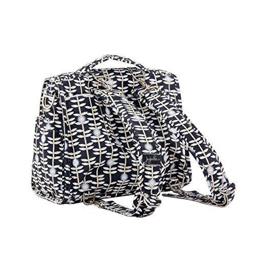The Ju-Ju-Be Classic Collection B.F.F. Convertible Diaper Bag provides multiple carrying and storage options to help you stay ultra-organized. Just like your B.F.F., this machine washable backpack is something you cannot live without. Designed with convenience and comfort in mind, this versatile bag can be carried using its top handle, over-the-shoulder strap or backpack straps. The memory foam straps have textured fabric underneath to prevent the bag from slipping off your shoulder. Keep organized and sane, while never sacrificing looking good. The bag's lining is protected with AgION natural treatment, which inhibits and reduces the growth of odor-causing bacteria, mold and mildew. The outer fabric is treated with Teflon fabric protector, so you can repel stains and keep it clean. The front "mommy" zippered pocket is large enough for smartphones, wallets, keys attach to the key fob stretch cord, and other personal items. Inside organization includes (4) gusseted pockets, (3) zippered pockets and lots of wide open space. The main zippered pocket is large enough for diapers, wipes, extra clothes and other items. The back pocket is designed with crumb drains to keep this area clean, is large enough to store your child's books, and includes a super cushy matching memory foam changing pad. Bottle pockets are located on either side of the bag and come insulated with Thinsulate by 3M to keep your items hot or cold. Dandy Lines print is a white and black pattern with a shiny beige lining. The print is accented by gold colored hardware, including luggage feet to keep the bottom of your bag clean when you set it down. With the B.F.F. Diaper Bag, you can choose to wear it as a backpack or messenger style - it's your choice. Whichever you choose, the B.F.F. has your back, just like every B.F.F. should. The Ju-Ju-Be Classic Collection B.F.F. Convertible Diaper Bag comes with a 90-day limited warranty that protects against manufacturing defects.Feature