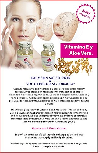 Moisturizing capsule with Vitamin E and Aloe Vera for facial and body use. It provides instant improvement in your skin leaving it moisturized and rejuvenated. It helps to improve the brightness and tone of your skin, minimizes lines and wrinkles giving the skin a firmer appearance. The skin will be visibly smoother, natural and young.Feature