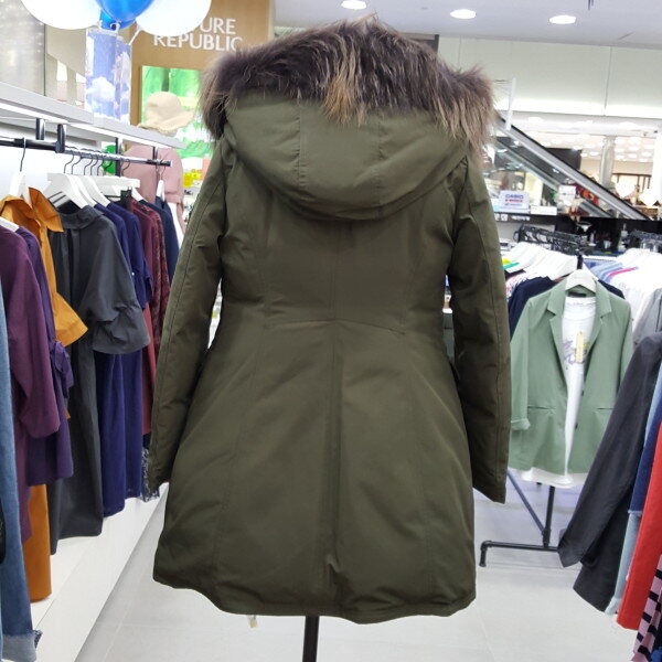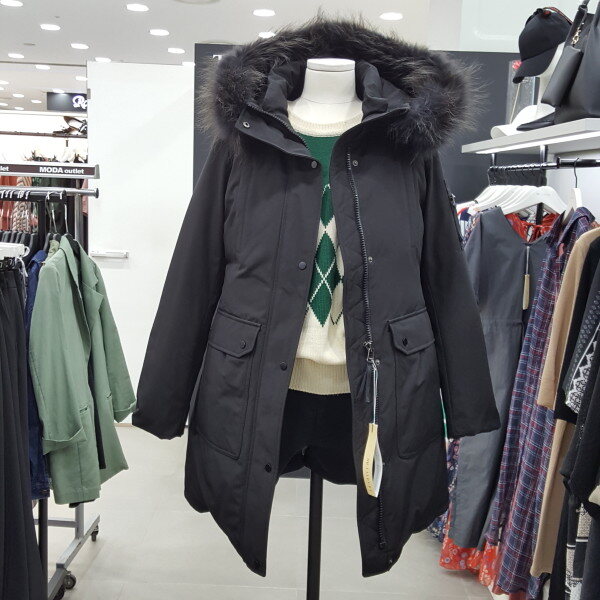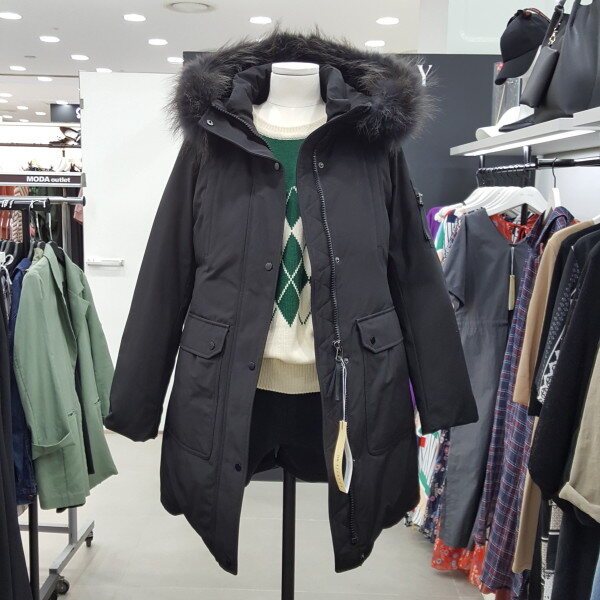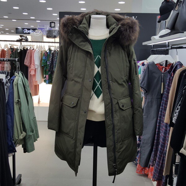 탈부착 가능하여 다양한 스타일을 연출할 수 있는 천연 라쿤퍼 장식 야상 점퍼익니다 포켓 디테일이 실용적이며 지퍼 클로징으로 탈부착이 편리하고 버큰으로 마무리하여 바람을 이중으로 막을 수 있어 겨울철 아우터로 용이한 아이템입니다