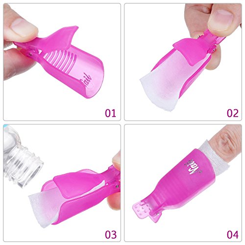 Kindly reminder: you need to put your fingers into clips and wrap your fingers with those cotton pads soaking polish remover liquid, and wait for about 10 minutes to achieve better effects