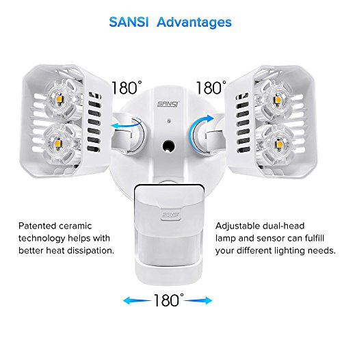 50,000 HOUR LIFESPAN: Sansi's LED Security Motion Sensor Light adopts our patented Ceramic Heat Dissipation Technology (CHDT), by which lighting performance and cooling efficiency are greatly improved, giving it the longevity you expect in a high quality security light at an affordable price