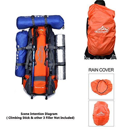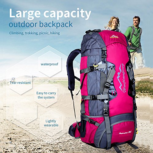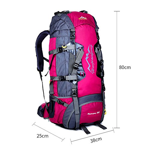-. Feature : 【IINTERNAL FRAME DESIGN】-- This Outdoor waterproof backpack Internal stent adopted aviation aluminum ultra-light material, very sturdy & durable. Perfect for Hiking,Climbing,Camping,Mountaineering,etc. / 【IMULTIFUNCTION 80L HIKING BACKPACK】-- With a capacity of 80 liters(4880 cubic inches); Plenty of pockets can carry your stuffs easily. Such as, kettle, cup, laptop, ipad, cell phone, power supply, data cable, headset, snack, towels, and Sunglasses, helmet,umbrella,etc. / 【IWATERPROOF & DURABLE & COMFORTABLE】--Rip-stop polyester to prevent the water from sipping into the bag; Made of lightweight durable materials.Padded adjustable shoulder straps and mesh ventilation promise an enjoyable carry. / 【IA RAIN COVER INCLUDED】--The travel backpack with a orange rain cover;light, comfortable, and adjustable chest and waist belts; ergonomic padded shoulder straps and waist belt can relieve burdened on the shoulder,quickly relieve pressure on the spine. / 【INO RISK PURCHASING】-- 3 years 100% satisfaction warranty guaranteed & easy-to-reach customer service.If you have any questions in using, please contact free to us.