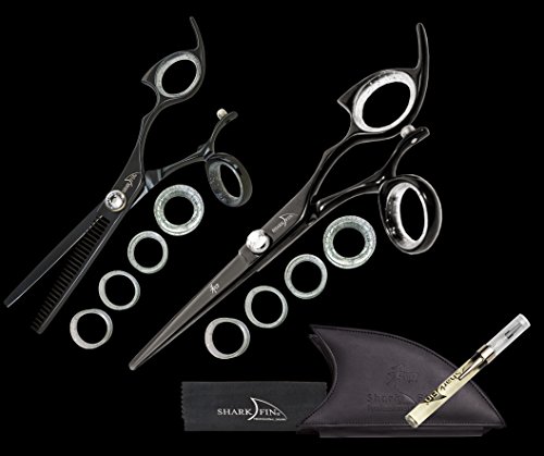 Shark Fin Beauty -Professional Swivel Thumb Black 28 Tooth & 5.5" Cutting Shear / Scissor Set