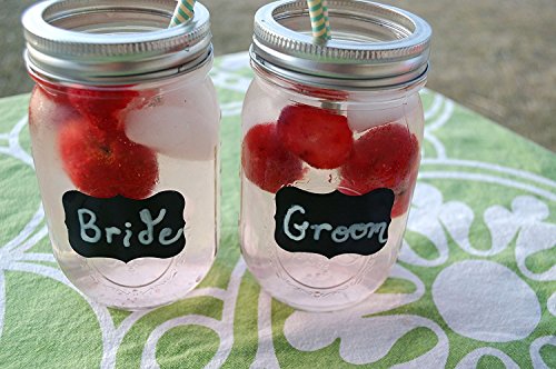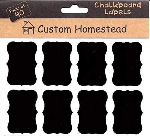 Fancy Rectangle Mini Chalkboard Labels Set of 40 - Reusable Blackboard Stickers for the Kitchen, Pantry, Wine Glasses, and Mason Jars