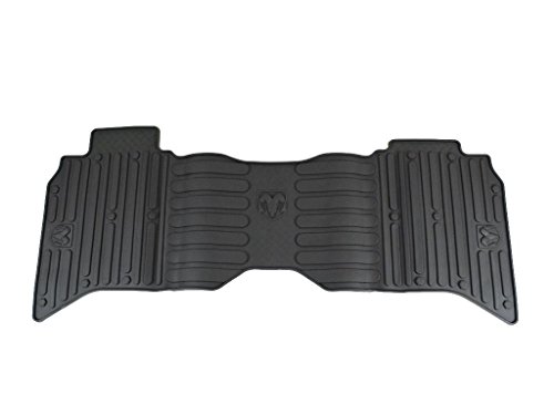 -. Feature : One-piece rear row mat feature three Ram's Head logos and bolt head pattern design / All-weather Floor Mat is TPE rubber molded in Black / Features deep ribs to trap and hold water, snow and mud to protect your carpet and keep it clean / Also known as a Slush Mat, a must during inclement weather, but work great in all seasons / Fits: 2013 RAM crew cab / Rear mat only / RAM head logo / Add value and style; helps protect your resale value / Deeply sculpted channels trap water, road salt, mud, and sand