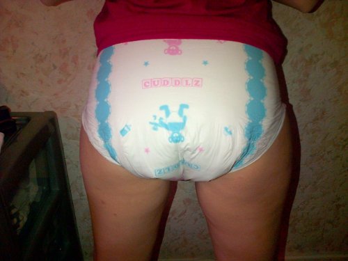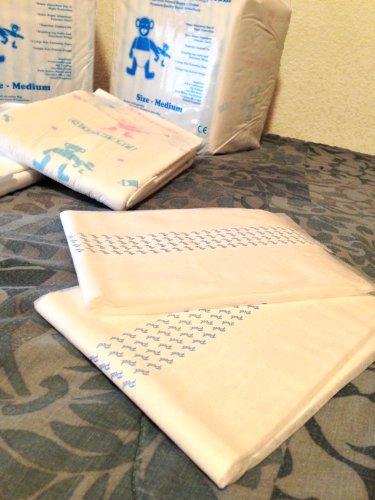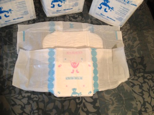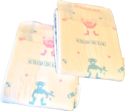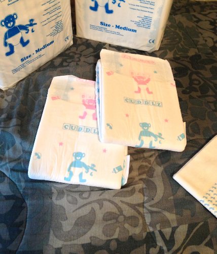 -. Title : 2 Diapers - Cuddlz All-Over P.R.Inted single-taped + 2 Quadro pads Medium or Large ABDL adult baby