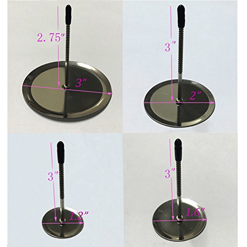 The 4 flower nail is perfect for size, works great for piping extra-large roses or other size flowers.Dimension approximately:3" x1-1/5",3"x1-3/5" ,3"x2", 2-3/4"x3"inch(HxD)