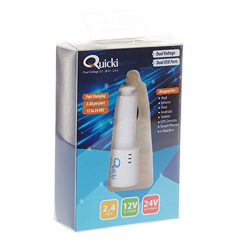 Quicki Dual Voltage (12/24) - Dual USB Charger - 2.4A High Power Charger (60W Max) - iPhone iPad Android Compatible