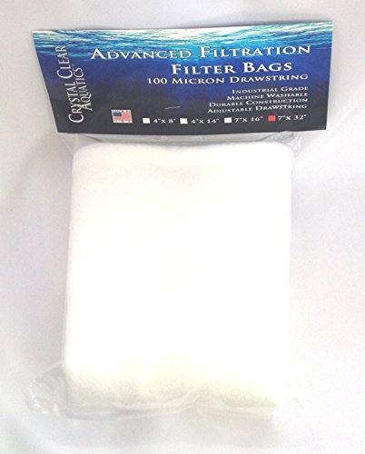 Crystal Clear Aquatics 100 micron filter bag with built-in drawstring is for general use particulate filtration. Made of polypropylene material. It can be used in aquariums and ponds. It is industrial grade, machine washable and re-usable. Position filter bag in high flow areas such as, underneath drain lines, in filters, sumps or refugiums. Measures 7-inch by 32-inch.Feature