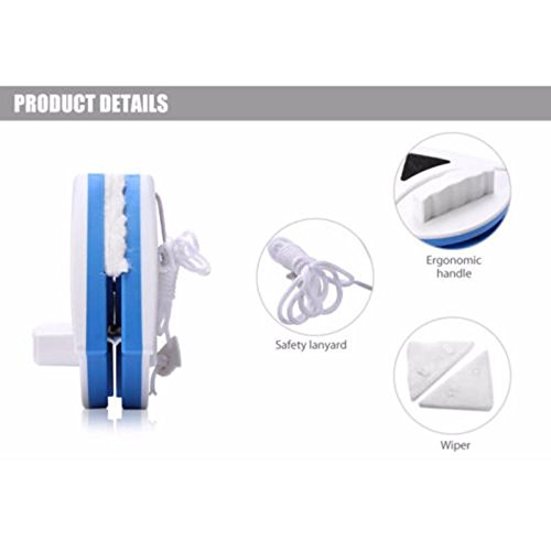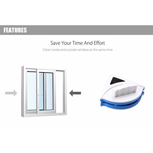 -. Feature : Strong adsorption force-Effective for double glazed windows, 3-8mm thickness. / Easy to clean-Cleans the outside of your windows,while stay in your room. / Environmentally friendly-High quality ABS material, Natural Latex, Magnet.. / Unique design-Double sided design, strong magnetic, it is very safe and convenient / Package Included:1 x Double sided glass cleaner