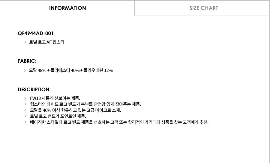 | 소재 | 모달 48% + 폴리에스터 40% + 폴리우레탄 12% |