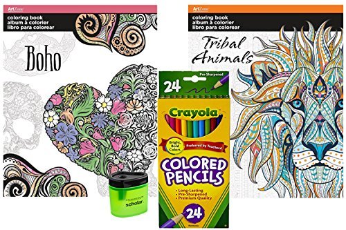 Amazon Crayola Colored Pencils (24) Prismacolor Pencil Sharpener and 2 Adult Coloring Books (Triba