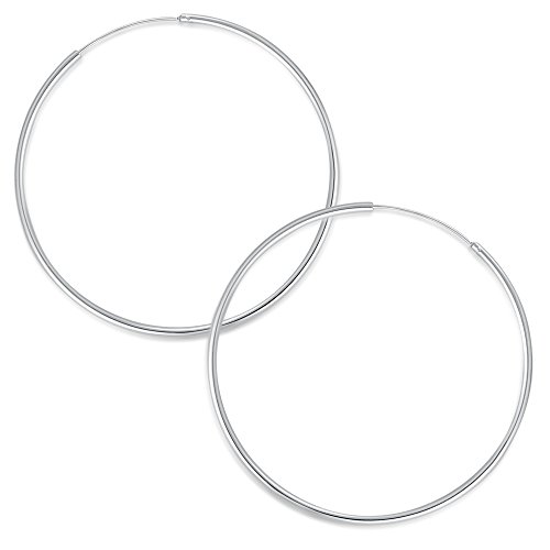 -. Title : MBLife(MBライフ) シルバー925 純銀 光沢 仕上げ 大型 細身 エンドレス フープ イヤリング (直径 7cm/2.75インチ)