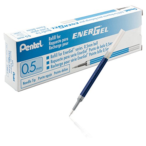 Pentel Refill Ink for EnerGel Liquid Gel Pen, 0.5mm, Needle Tip, Blue Ink, Box of 12 (LRN5-C-12)
