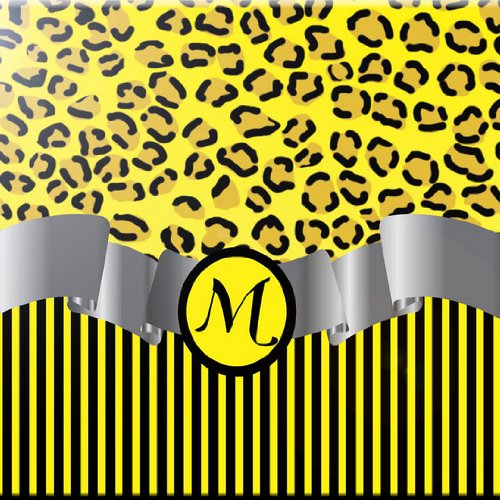 Rikki Knight RK-8intilec-2356 8" X 8" Letter "M" Yellow Leopard Print Stripes Monogram Design Ceramic Art Tile