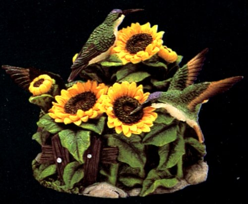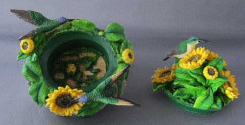 Trinket Box Resin Hummingbirds and Sunflowers Trinket Jewelry Box 5" High, Sculptured