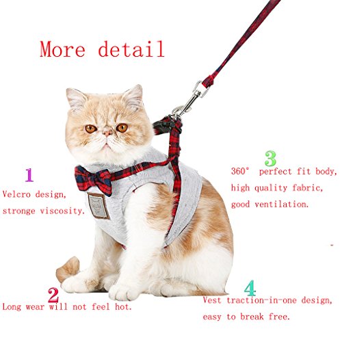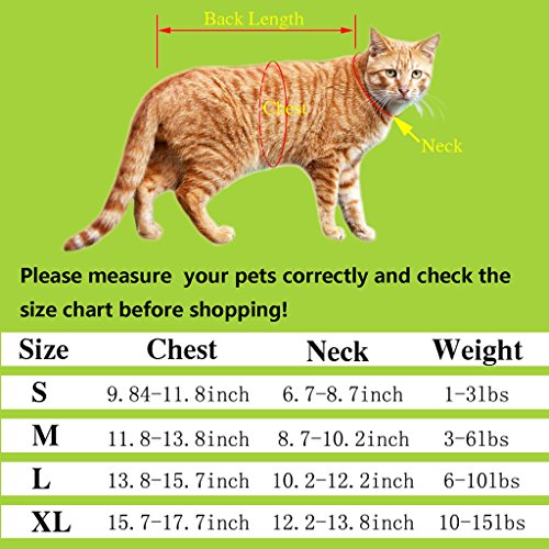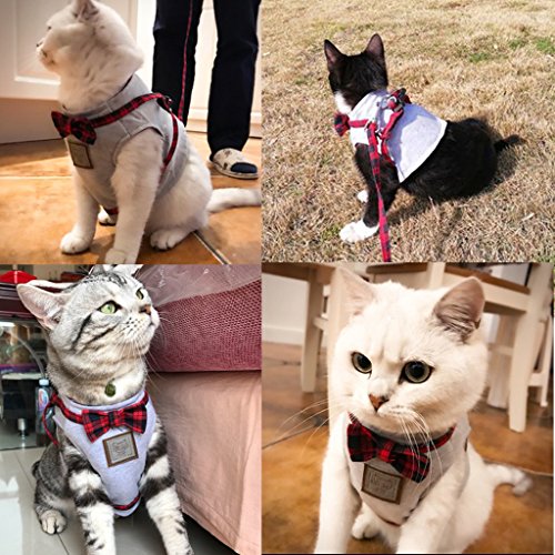 Feature: 1: To enhance the safety of new songs to prevent the impact of the outside world from the owner's arms. 2: Reduce cats obesity, exercise, bid farewell to lazy cat habits. 3: To strengthen the community more gentle, character is also sticky. 4: Perfect for everyday walk and weekend party, or just making your pet look its best. Specification: 1:Material: knitted fabric cotton. 360 perfect fit body, quality fabrics, good ventilation. 2:Added D-hooks in the back for leash attachment, easy on and easy off with velcro and buckle 3:Total length of traction 140 cm/55inches Size: S: Bust:9.84-11.8inch, neck circumference:6.7-8.7inch, M: Bust:11.8-13.8inch, neck circumference: 8.7-10.2inch L: Bust: 13.8-15.7inch, neck circumference: 10.2-12.2inch L: Bust: 15.7-17.7inch, neck circumference: 12.2-13.8inch Package Include: 1 x Pet Cat Vest and leash set 1 x Pet ID Tag 0