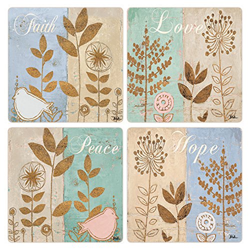 CoasterStone Le Pastel Jardin Absorbent Coasters (Set of 4), 4-1/4", Multicolor