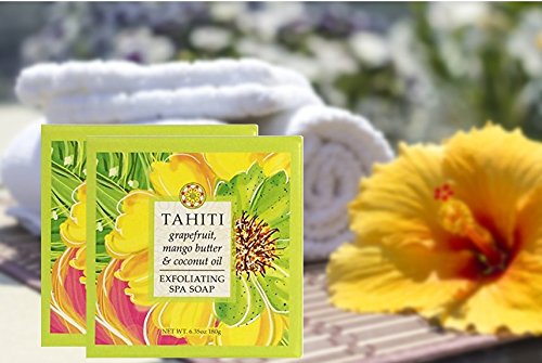 Exfoliating Spa Soap Enriched w/ Shea Butter, Cocoa Butter, and More Set of 2, 6.35 oz Destination Round Vegetable Bar Soap (Tahiti (Grapefruit, Mango...